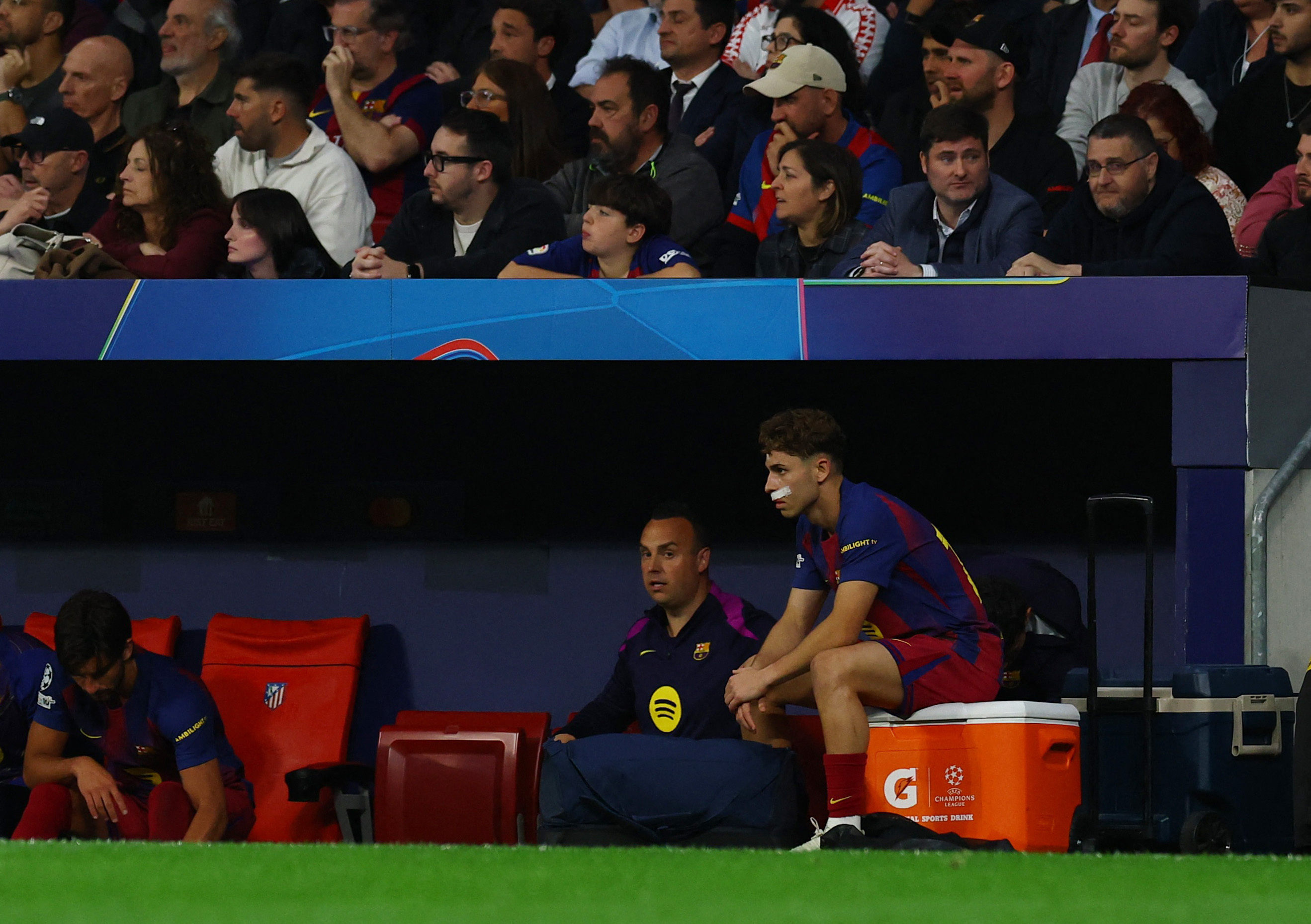 El volante de los catalanes sacó la peor parte y resultó con varias heridas cortantes en la zona de la nariz, pómulo y labio superior en una acción fortuita que no recibió sanción del árbitro.