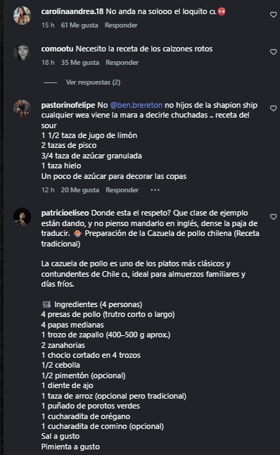 "Solo vine por los comentarios y no me han decepcionado", publicó un hincha al ver la enorme cantidad de mensajes que aparecen en el Instagram del Derby County, siendo en su mayoría recetas y mensajes defendiendo a Ben Brereton.