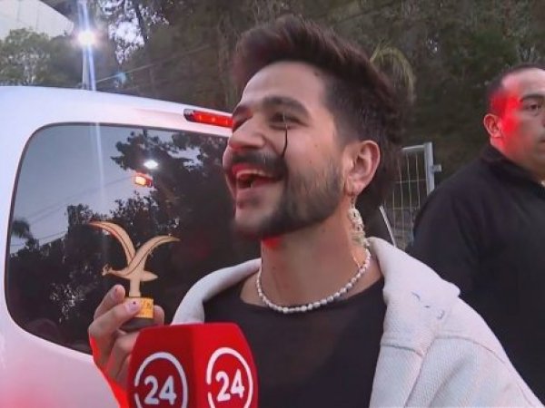 Viernes 24 de febrero de 2023 "La más linda": Camilo recibe la primera Gaviota en su llegada a la Quinta Vergara El cantante colombiano llegó al anfiteatro viñamarino y el periodista Kevin Felgueras le obsequió una Gaviota de madera que recibió junto a Evaluna Montaner.