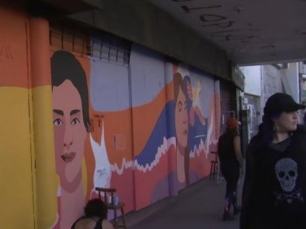 Miércoles 8 de marzo de 2023 Artistas callejeras y muralistas se alistan para la conmemoración del Día de la Mujer Yamila Reyna y María Elena Dressel compartieron con artistas que expresan su arte en las principales calles de Santiago a horas de la masiva marcha que se espera para este 8M.
