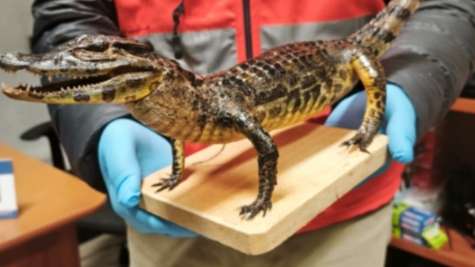 Una mujer que ingresaba a Chile por el paso fronterizo Chungará fue sorprendida transportando un yacaré bebé disecado al interior de una maleta.