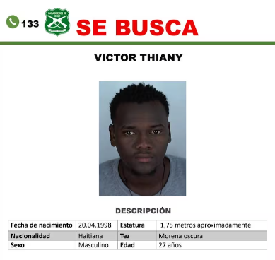 Carabineros emitió una alerta de “se busca” para dar con el paradero de Víctor Thiany, ciudadano haitiano de 27 años que permanece prófugo por su presunta participación en un robo con homicidio ocurrido el 31 de marzo en la comuna de Quinta Normal.