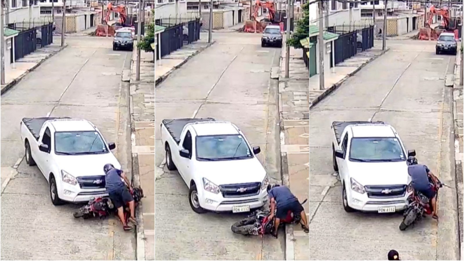 No obstante, una camionera blanca que transitaba por la zona no dudó en embestir tres veces al motociclista.