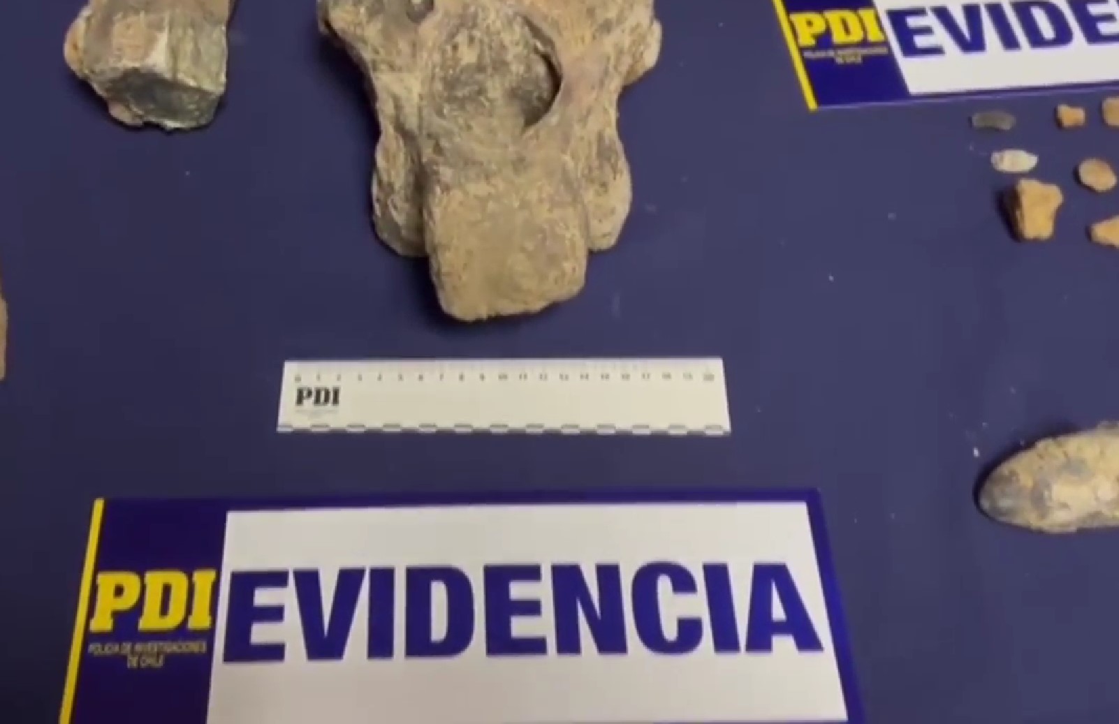 Detectives de la Brigada Investigadora de Delitos Contra el Medioambiente y Patrimonio Cultural de la PDI (Bridema) lograron recuperar fósiles de dinosaurios que eran exhibidos por un usuario de la red social TikTok.