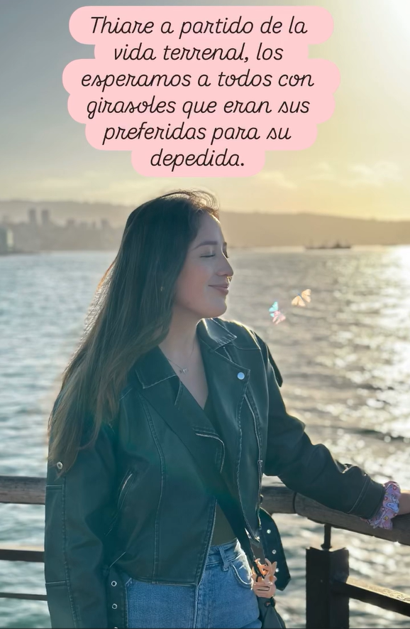 Sin embargo, este jueves, la familia de Thiare comunicó que la joven falleció. "Thiare ha partido de la vida terrenal. Los esperamos a todos con girasoles, que eran sus preferidas, para su despedida", dieron a conocer a través de historias de Instagram.