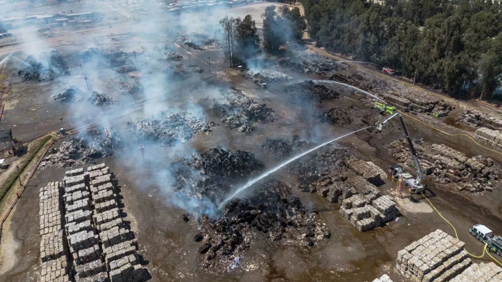 Respecto al incendio, el tercer comandante del Cuerpo de Bomberos de Puente Alto, Óscar Valdivia, señaló que "ya estamos haciendo un trabajo de poder bajar temperaturas en un sector. Estamos esperando las máquinas retroexcavadoras para que empiecen a desarmar los montones de fardos existentes para luego comenzar los trabajos para apagar el fuego".