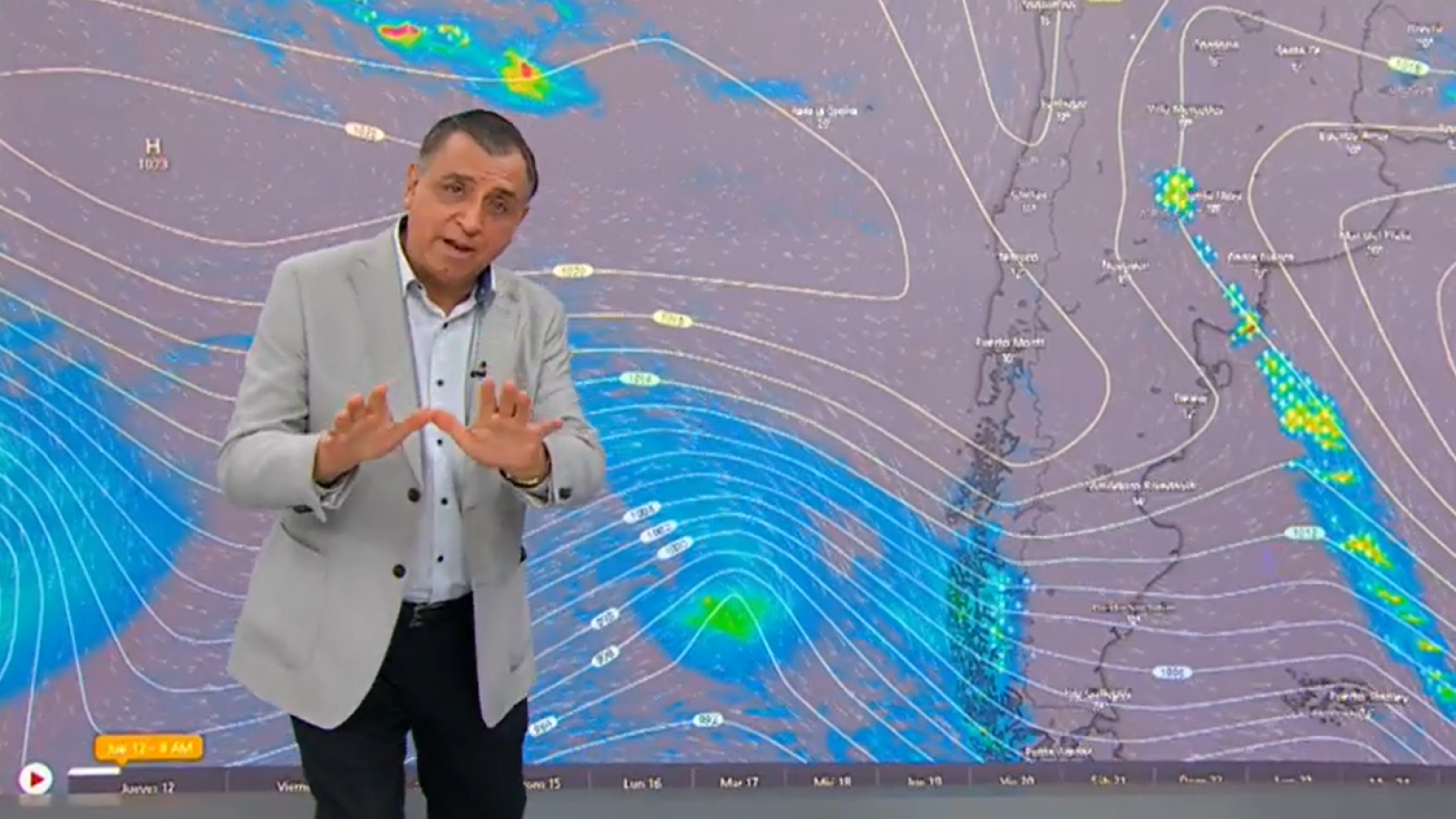 Donde sí confirmó lluvias es en las regiones de Ñuble, Maule y Biobío: "Podríamos tener montos de 30 a 40 milímetros y viento de hasta 50 kilómetros por hora, que es un viento importante".