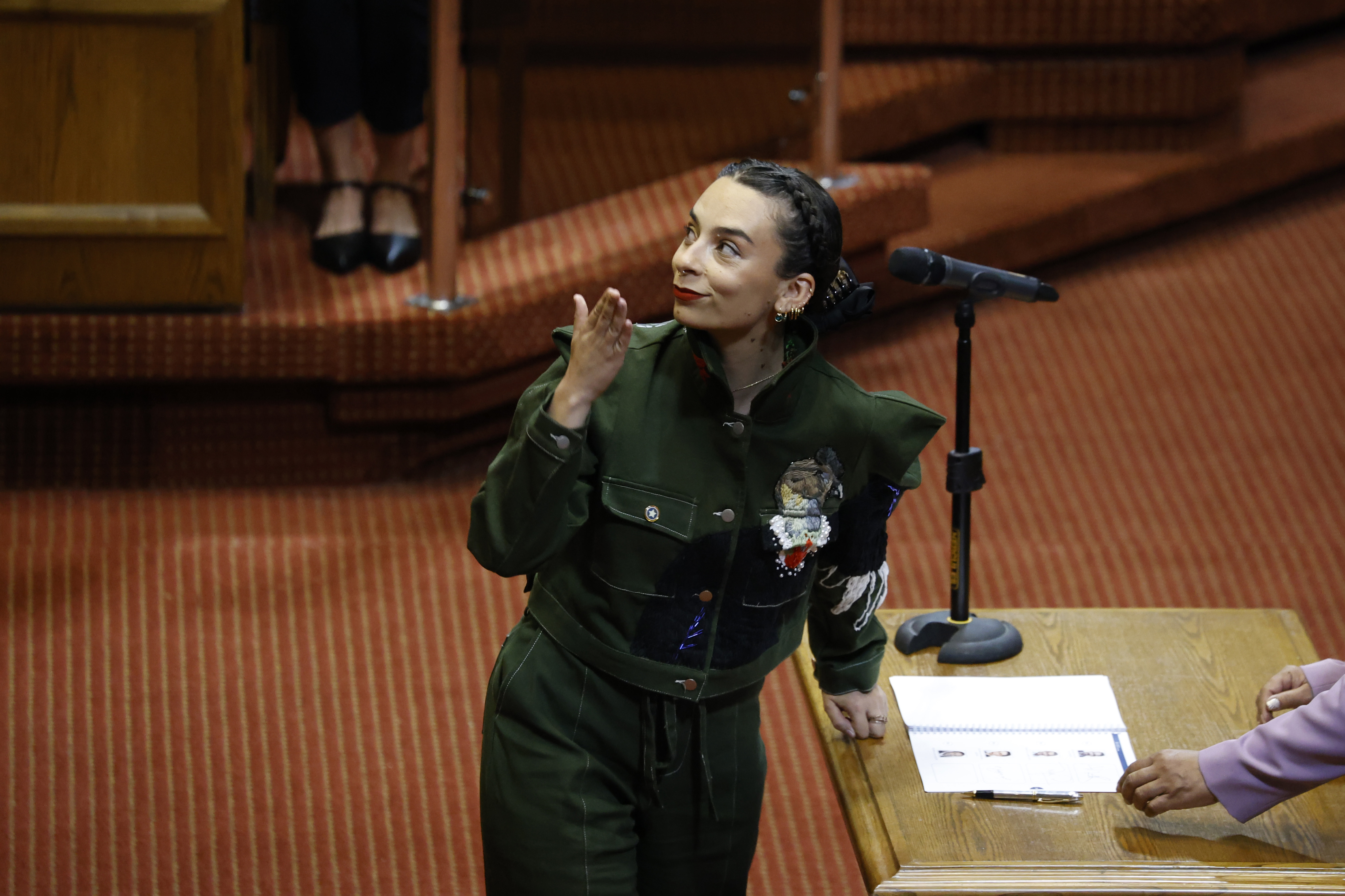 El gesto, cargado de símbolos y mensajes políticos, convirtió su primera aparición oficial como diputada en uno de los momentos más comentados de la jornada parlamentaria.