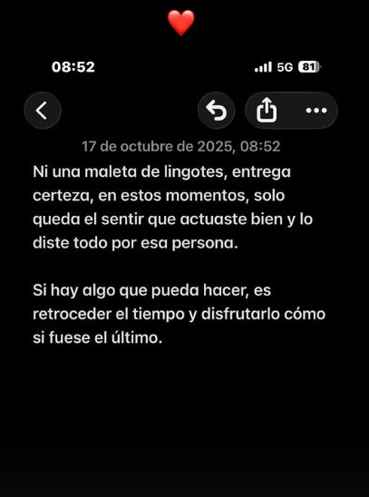 Este emotivo mensaje fue compartido a través de sus historias de Instagram y fue emitido por su esposa.