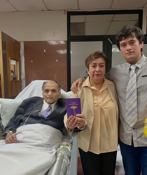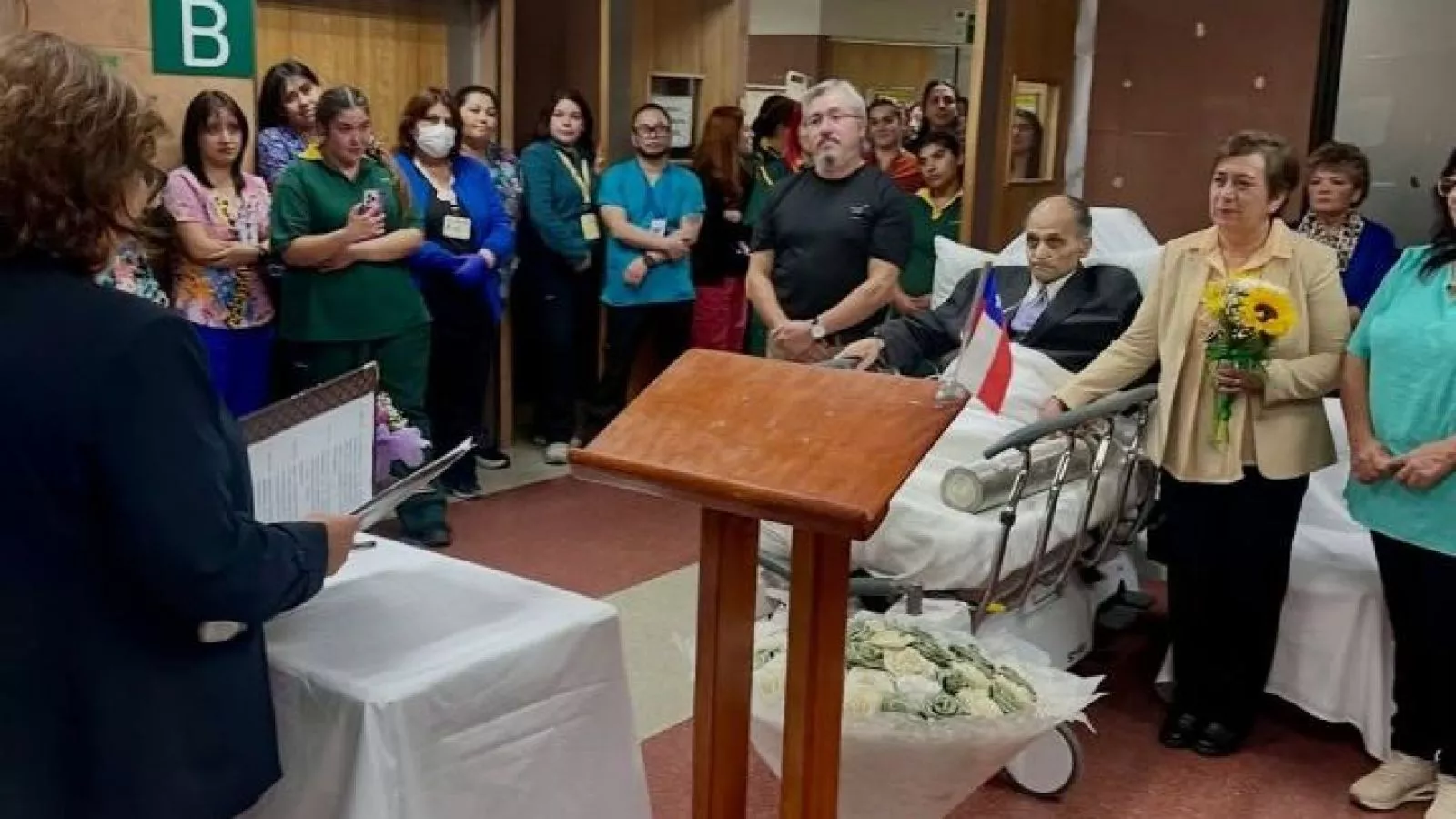 El excarabinero hizo posible su sueño gracias a la ayuda de los funcionarios del lugar, quienes organizaron la ceremonia en el Servicio de Urgencia del recinto hospitalario.