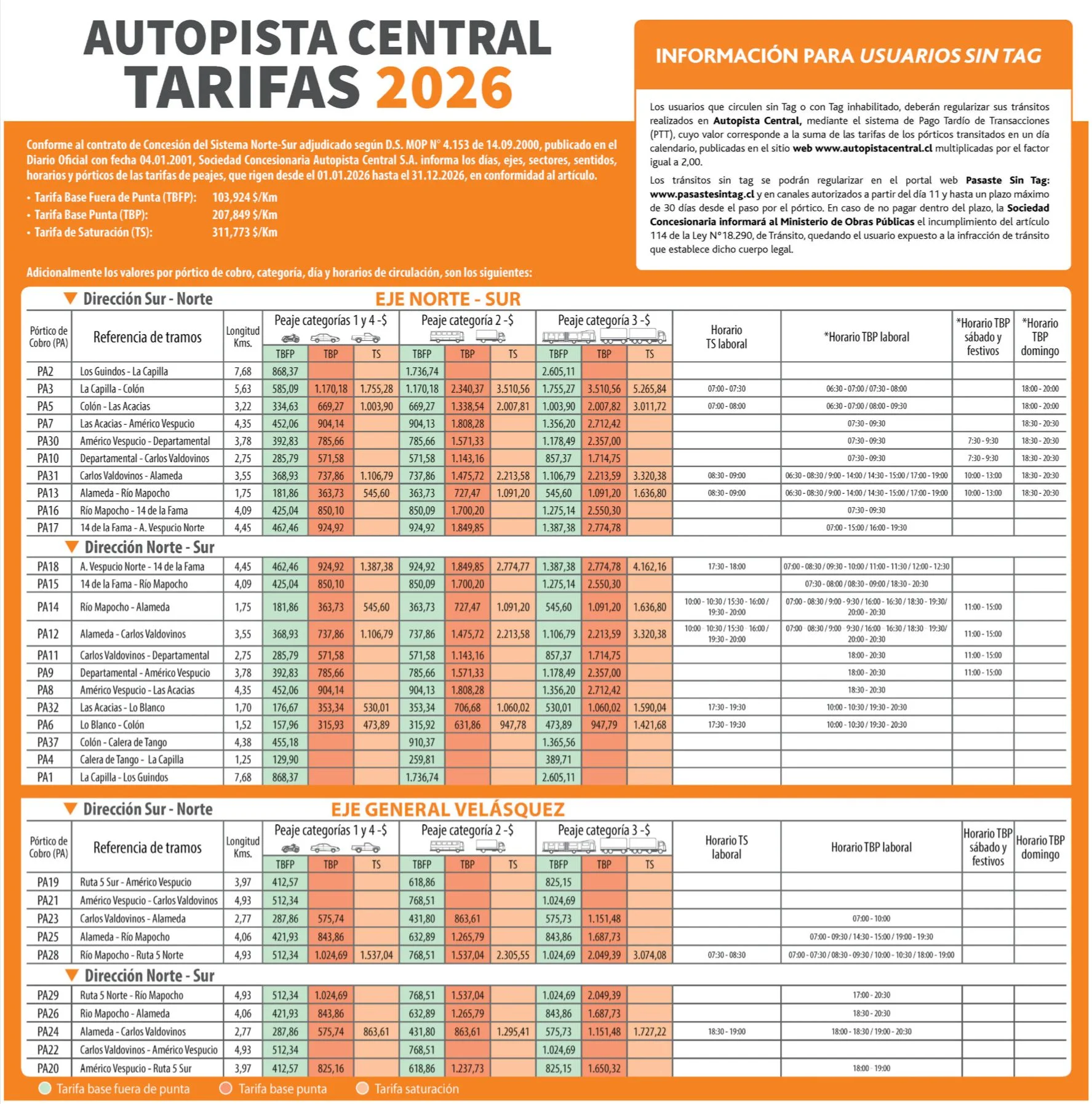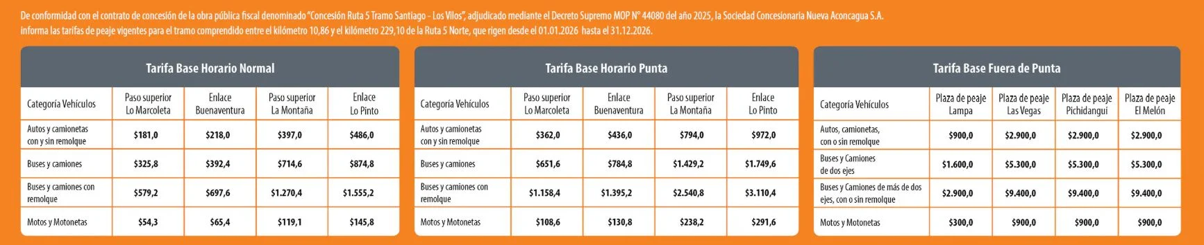 Desde el 01 de enero de 2026 las distintas autopistas concecionadas del país subirán el precio de los peajes y tags en un 3,4%, una alza que está estipulada por ley y varía de acuerdo a la inflación registrada.