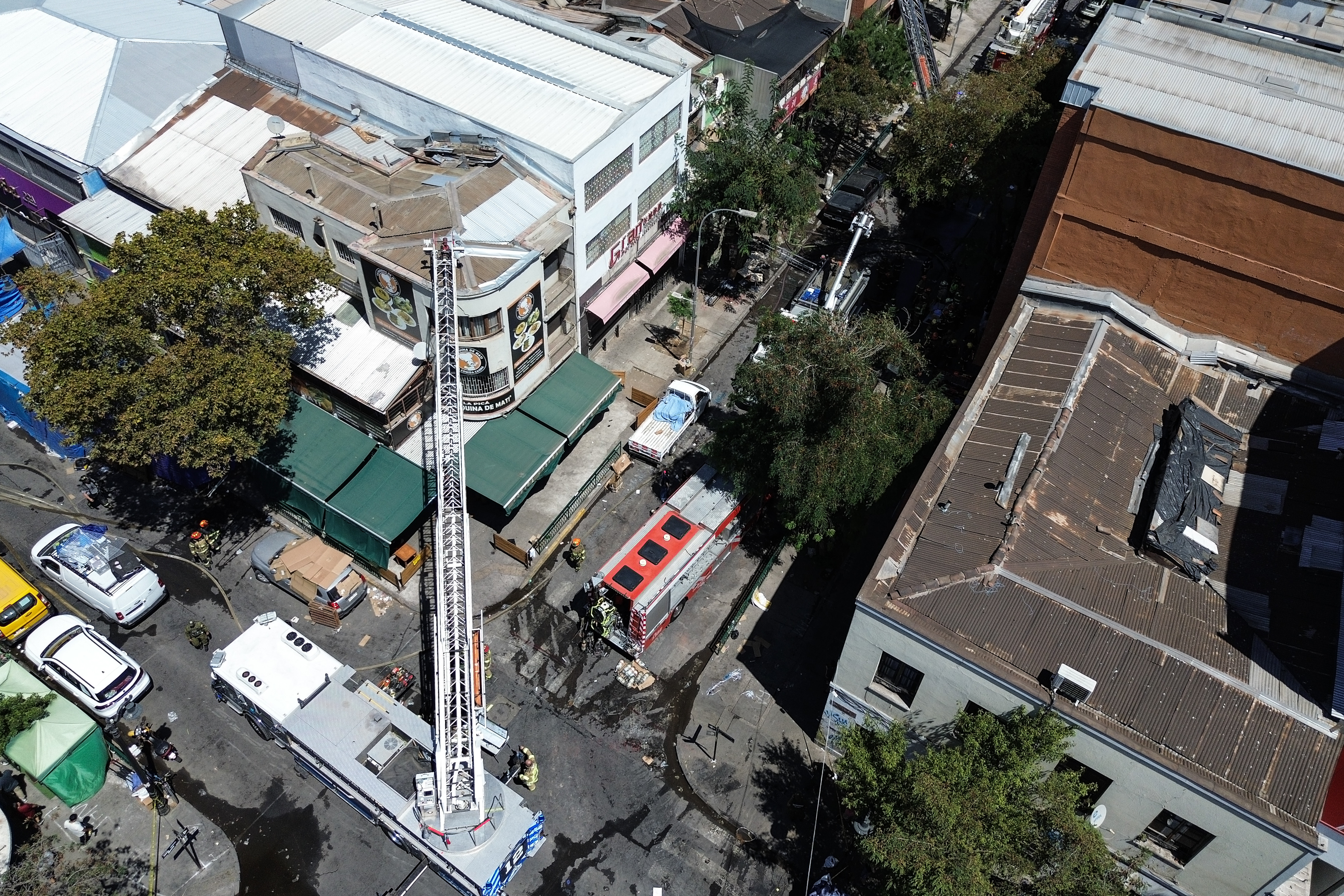 Máquinas de nueve compañías de bomberos y muchos efectivos debieron trasladarse hasta el local comercial ubicado en calle Sazié con Bascuñán Guerrero, en la comuna de Santiago.