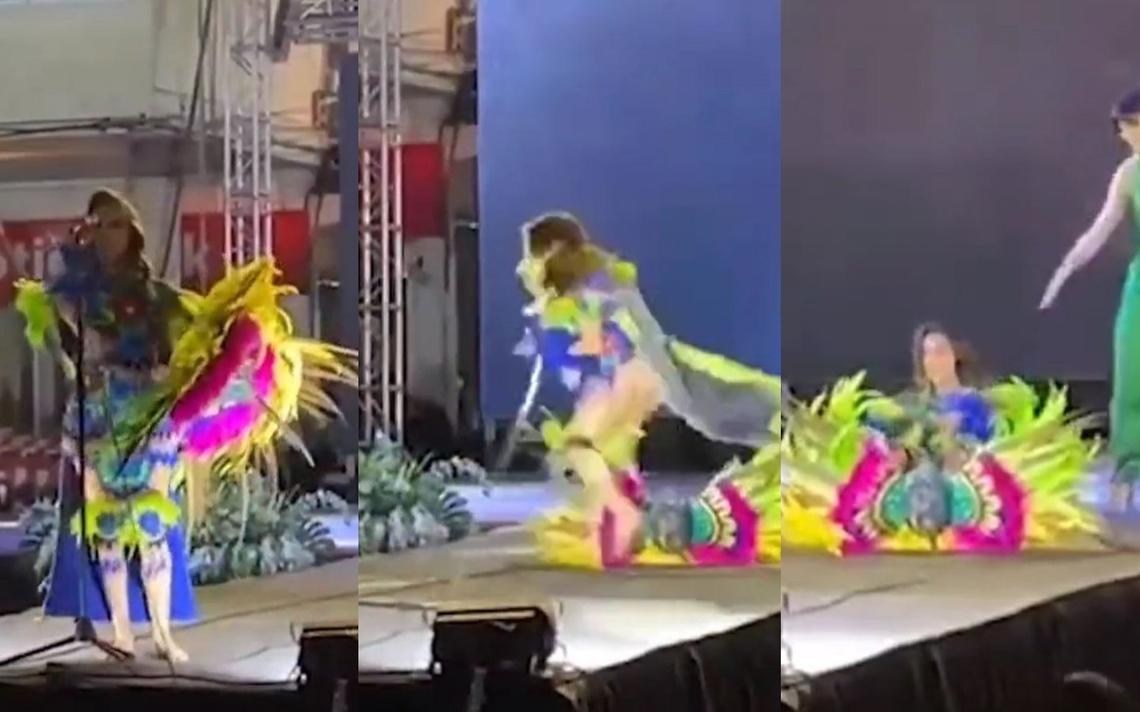 Una modelo se electrocutó con el micrófono durante su presentación en un concurso de belleza en México.
