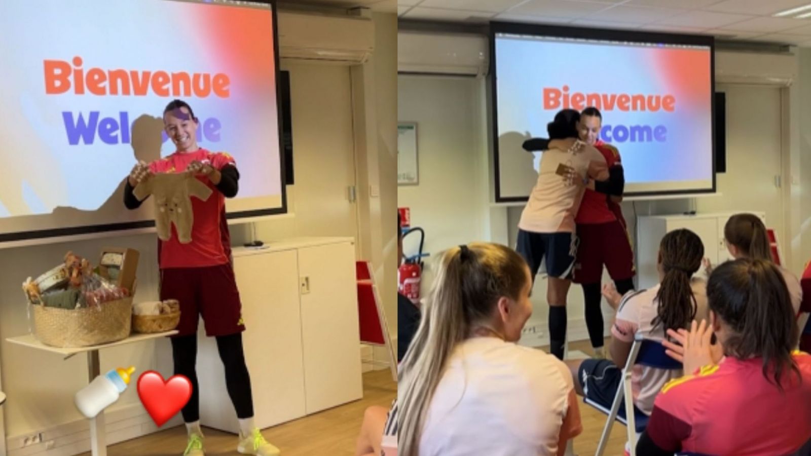 "Bienvenue Mía" fue el mensaje que adornó el camarín, un gesto que refuerza el compromiso del club francés con la conciliación entre la vida familiar y la carrera profesional de sus jugadoras, un tema clave hoy en el fútbol femenino de élite.