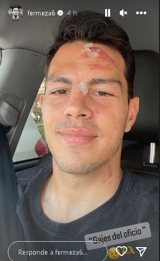 Un día después del ajustado triunfo de Colo Colo sobre Palestino por Copa Chile (1-0), el zaguero del cuadro árabe Fernando Meza publicó en su cuenta de Instagram una imagen suya que muestra cómo quedó su cara.