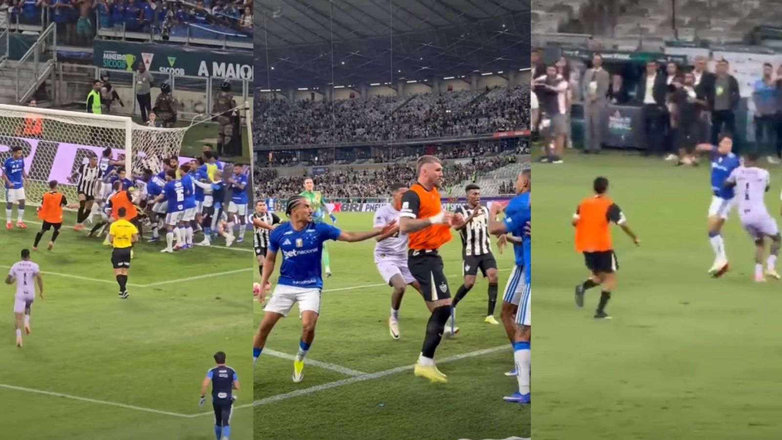 Todo comenzó por una disputa entre el centrocampista de Cruzeiro, Christian y el arquero de Atlético Mineiro, Everson, donde rápidamente se sumaron varios jugadores, terminando en una pelea generalizada por todo el campo de juego del estadio Mineirao de Belo Horizonte, con combos y hasta patadas voladoras.