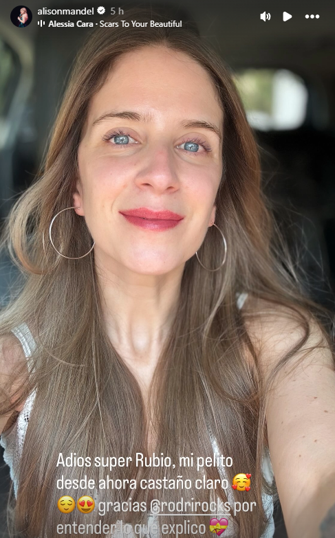 Una vez que ya había terminado, reveló su nuevo aspecto: "Adios super rubio, mi pelito desde ahora castaño claro".
