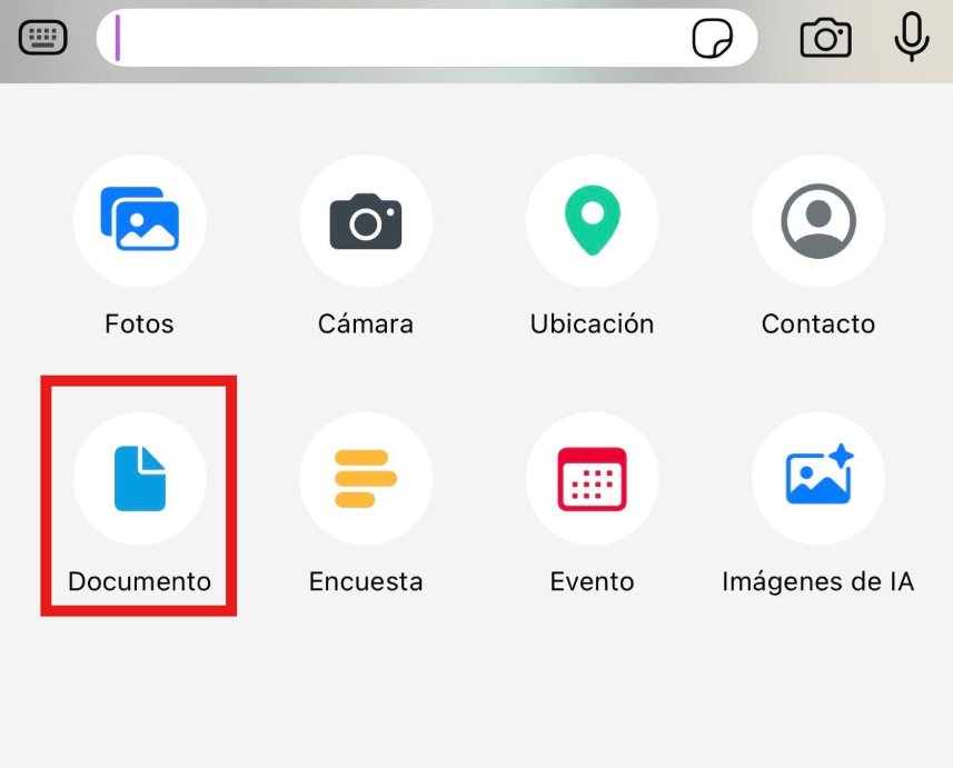 - Toca el icono de adjuntar archivos (el clásico clip).