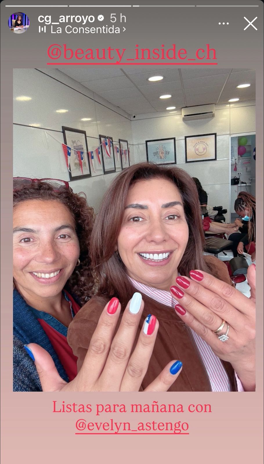 Las Fiestas Patrias ya llegaron y Carmen Gloria Arroyo se puso a tono con estas, sorprendió con un nuevo estilo de uñas dieciocheras con diseño de la bandera chilena que compartió por medio de sus redes sociales.