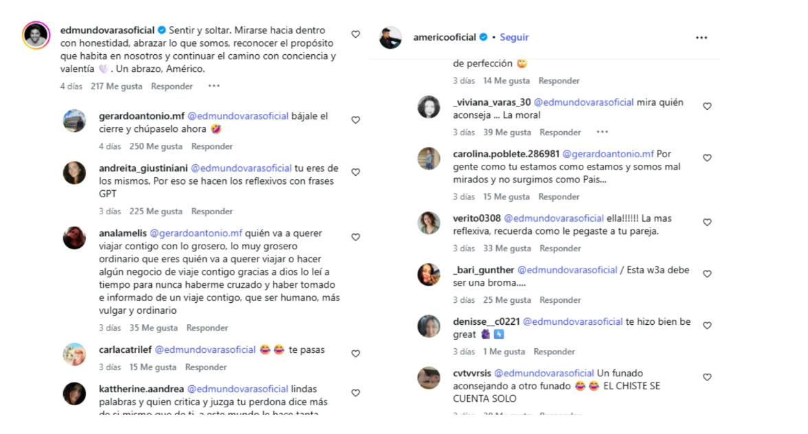 Tras el comentario de Edmundo Varas, los usuarios en Instagram no dudaron en mostrar su enojo y reprochar sus consejos luego del actuar en experiencias previas con otras parejas.