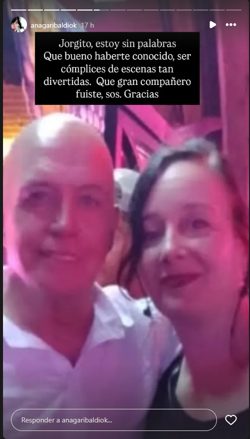 Quienes también publicaron mensajes de despedida fueron Nicolás Furtado ("Diosito") y Ana Garibaldi (Gladys), quien escribió: "Jorgito, estoy sin palabras. Qué bueno haberte conocido, ser cómplices de escenas tan divertidas. Qué gran compañero fuiste, sos. Gracias".