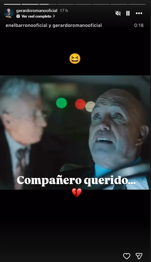 Justamente, Romano fue uno de los integrantes del elenco que reaccionó en redes sociales ante el deceso de su ex "partner" publicando una escena entre ambos correspondiente a "En el barro", un spin-off de El Marginal, acompañado de la frase "Compañero querido...".