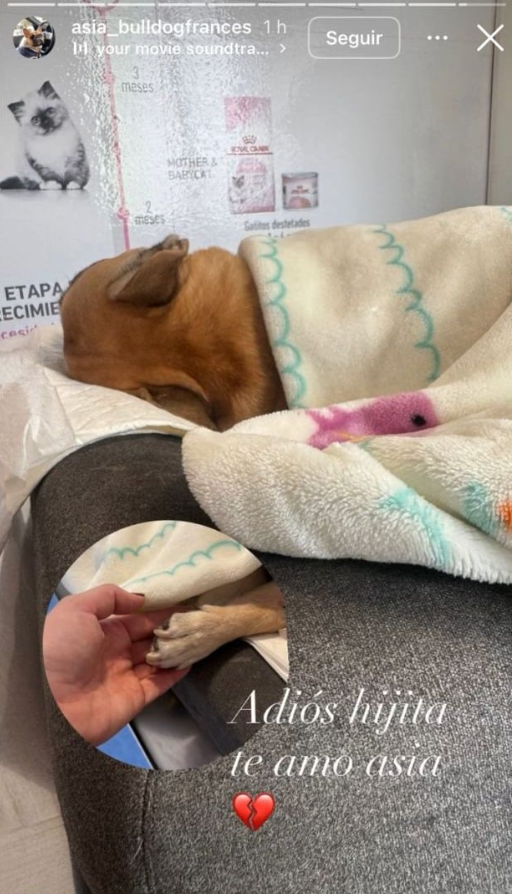 No obstante, durante la mañana del martes, la panelista de farándula comunicó el fallecimiento de su fiel compañera a través de la cuenta oficial de Asia. "Adiós hijita, te amo Asia", escribió junto a una emotiva imagen que mostraba la patita de la mascota.