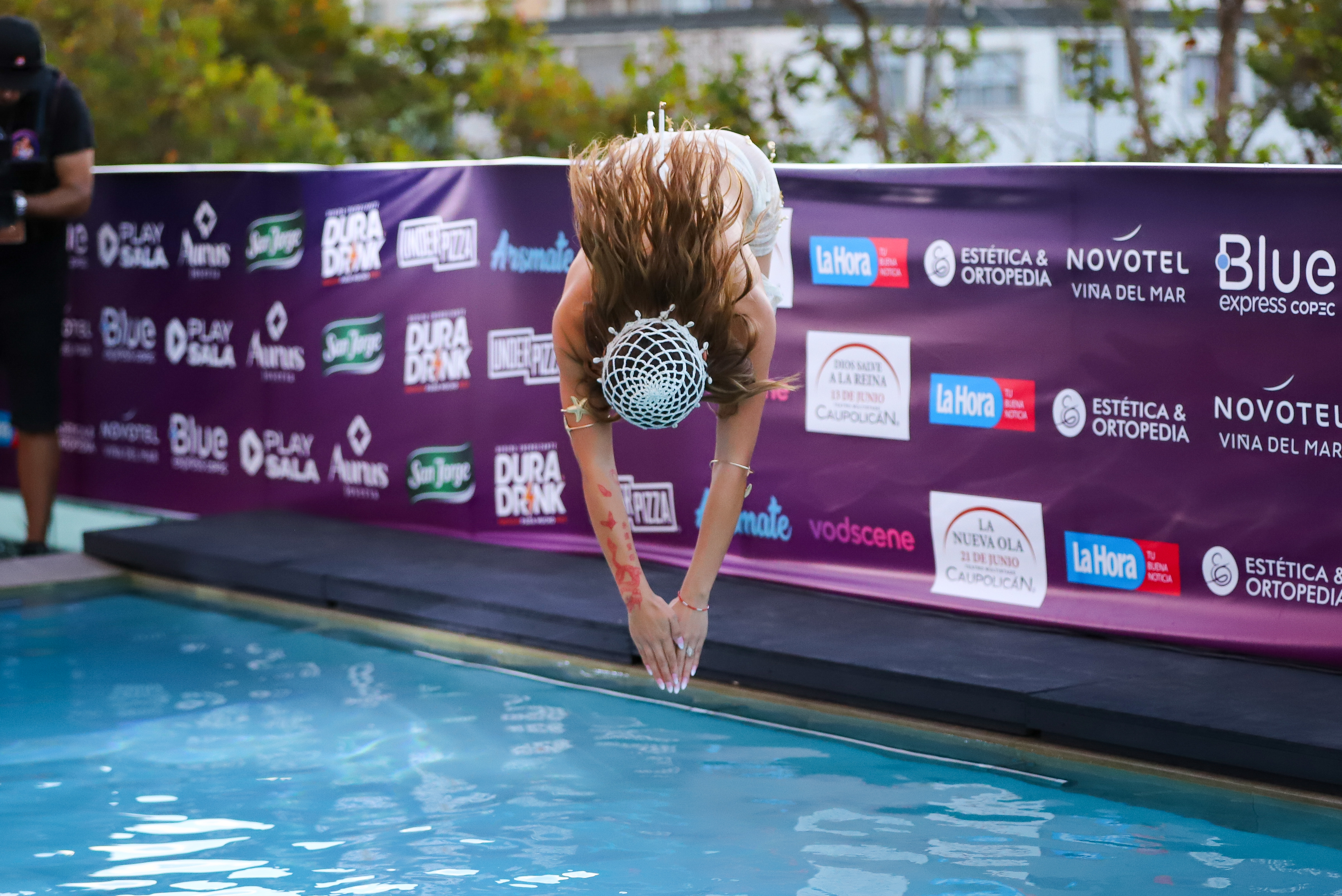 Durante la ceremonia, Labra recibió los atributos que la distinguen como monarca del certamen: banda, corona y anillo. Posteriormente se sumó a la tradición del piscinazo, ocasión en la que destacó con un bikini blanco.