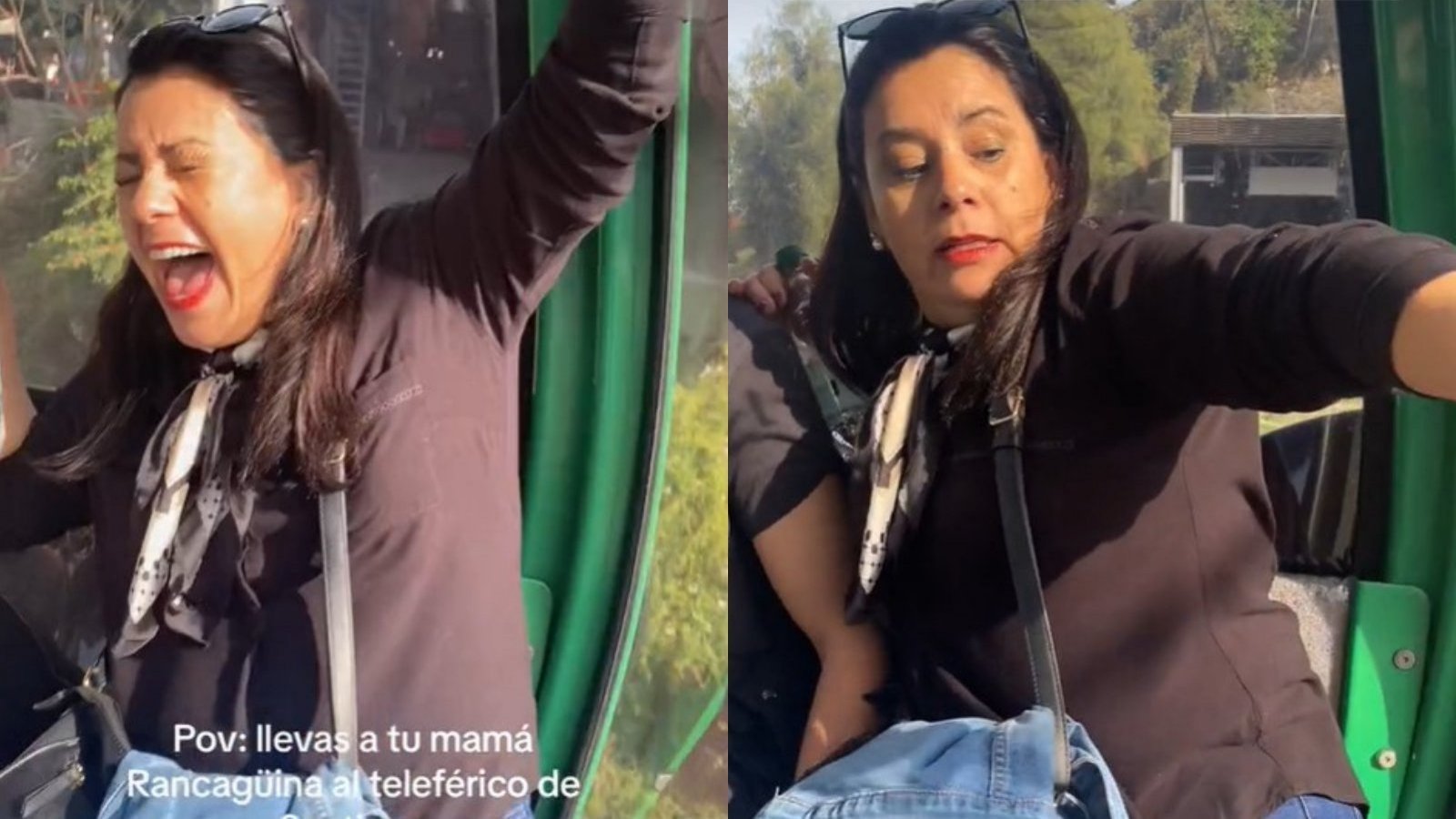 "Llevas a tu mamá rancagüina al teleférico de Santiago", escribió la joven en el video que se viralizó en la web por los constantes gritos de la mujer tan pronto comienza a avanzar el recorrido.