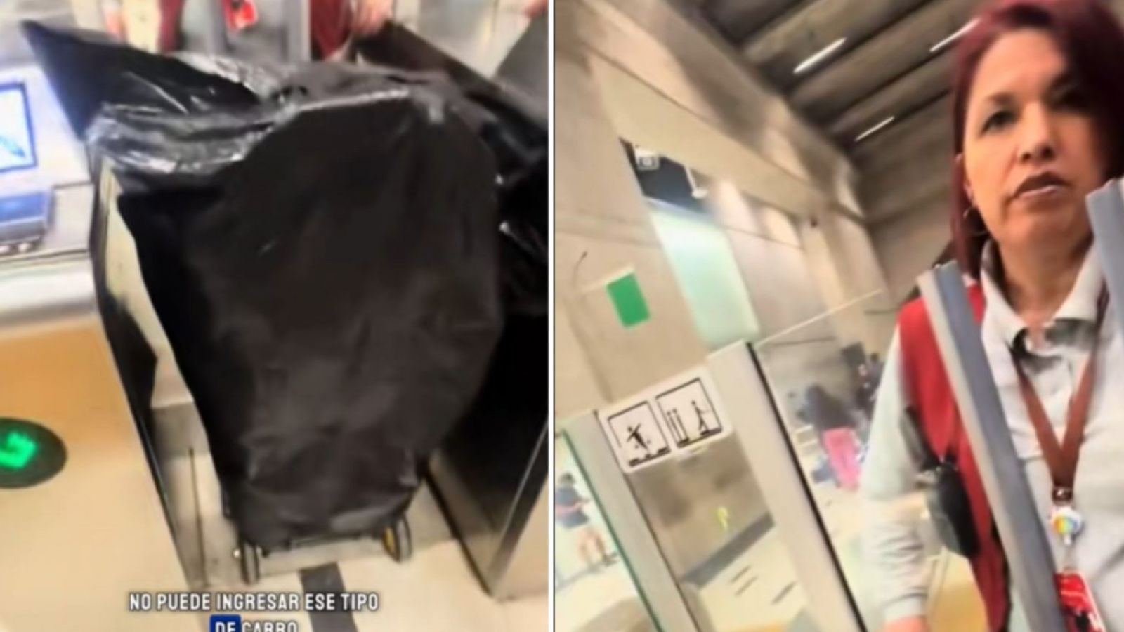 Ante la consulta, la funcionaria le indicó que su equipaje no entraba dentro de las categorías permitidas: "No, porque tú estás ahí con un carro que lleva comercio ambulante (...) con un carro de ese tamaño no puedes entrar".