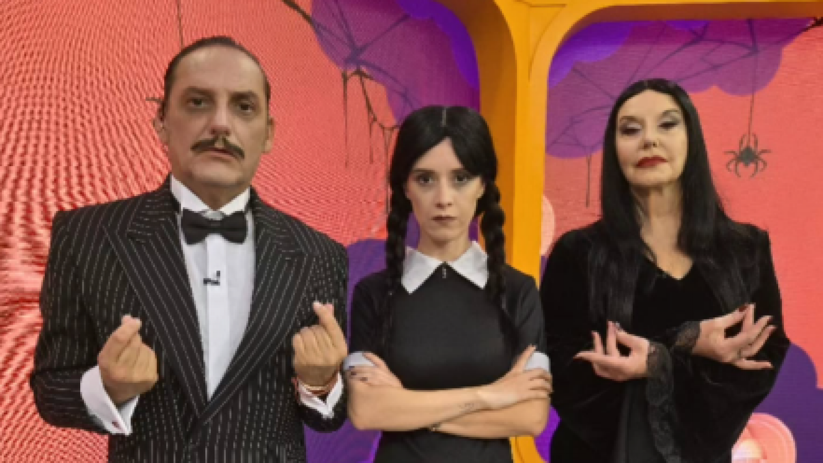 Durante la jornada matinal del pasado 31 de octubre, “El Medio Día” celebró esta tradicional fecha con los mejores disfraces, donde se pudo ver a todo el panel caracterizado como los integrantes de esta oscura y emblemática familia, tan representativa de Halloween. En la transmisión participaron Daniel Fuenzalida, Paulina Nin, Pamela Leiva, Jon Reyes y Cristian Pérez.