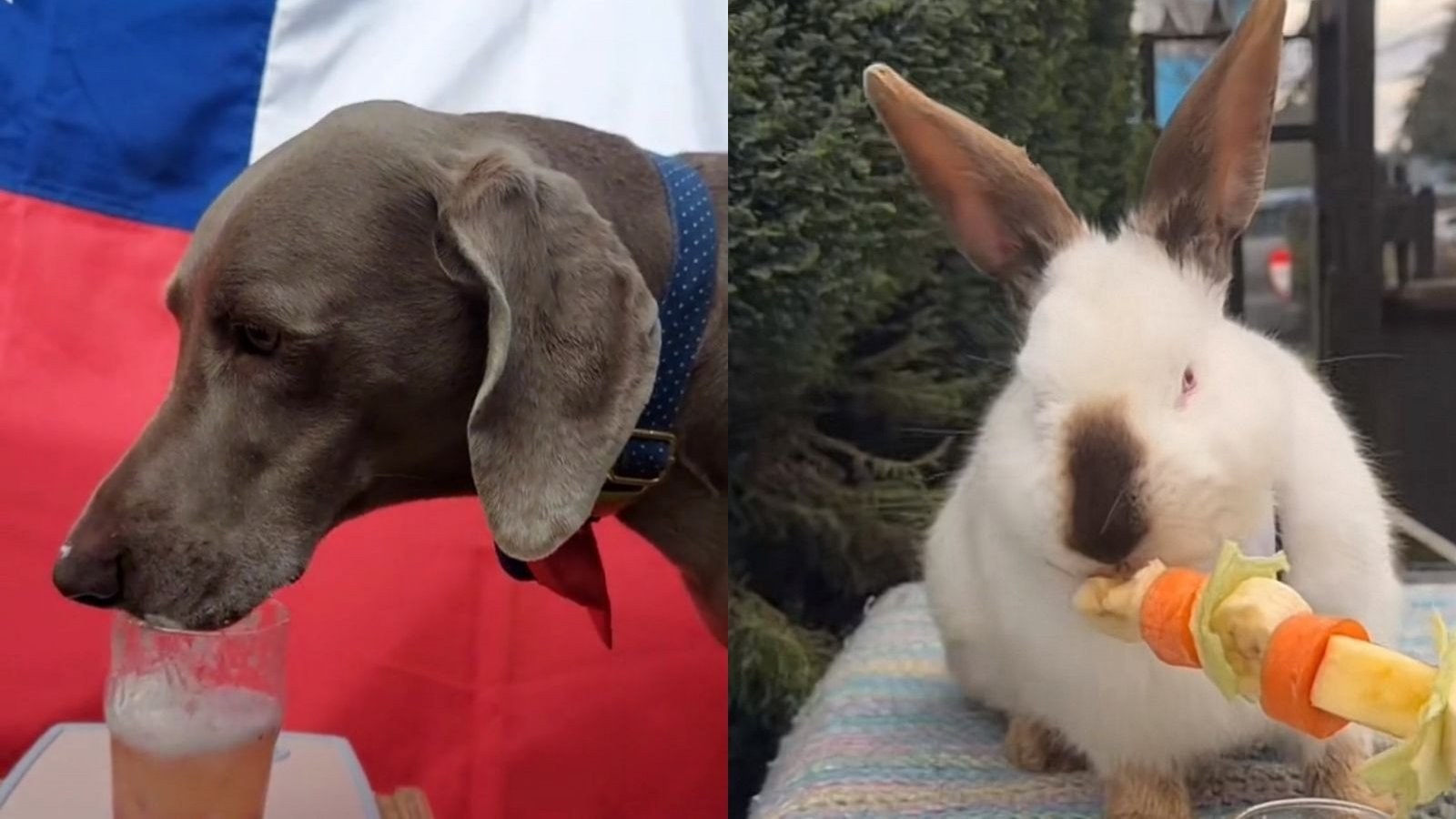Por otro lado, el video de @tamborcito.bonito muestra a un conejo disfrutando de su anticucho vegano, que incluye lechuga, zanahoria y plátano. Además, se le puede ver tomando un mote con huesillo, completando así su celebración dieciochera.