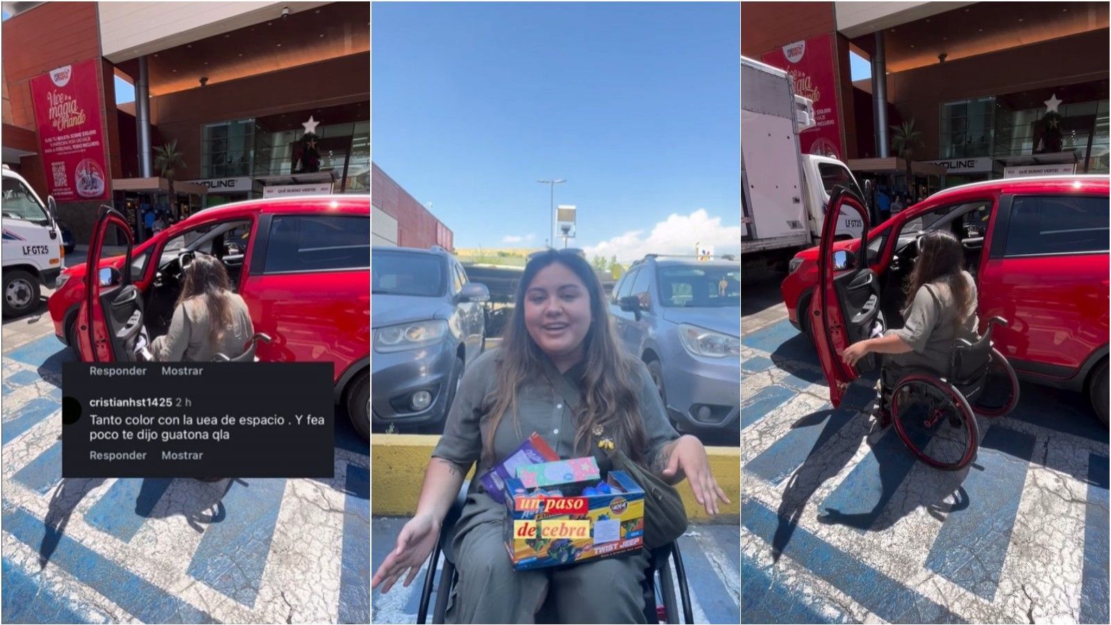 Sin embargo, y como ella misma dice, "no todo es aesthetic", pues en uno de sus videos comenta "Me acaban de decir fea, por decirle a una persona que no se estacionara en la línea que es para abrir el auto". En la descripción explica que "no son decoración ni 'espacio extra'. Son para poder abrir la puerta, sacar la silla de ruedas y bajar con autonomía" publicó.