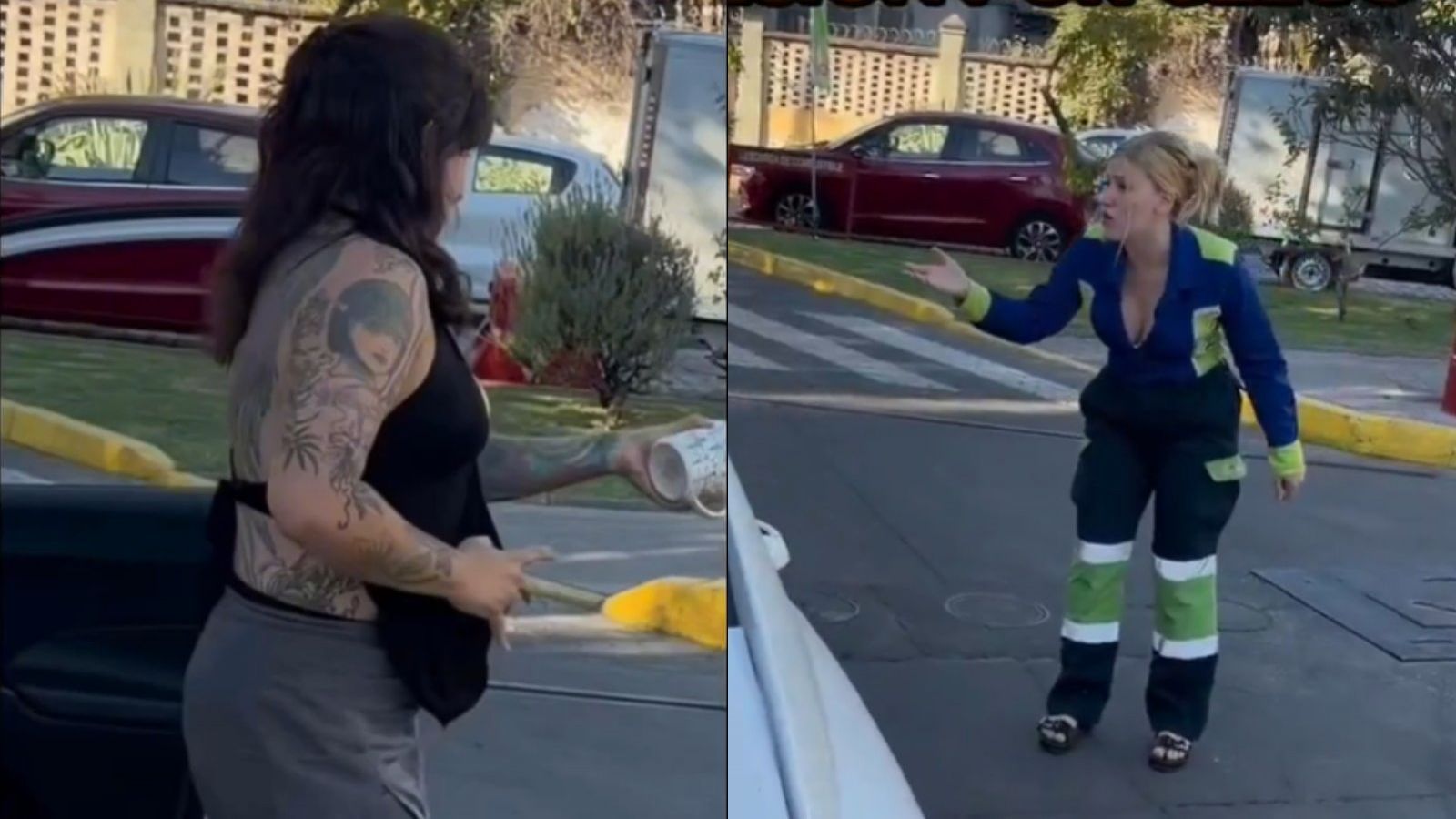 El clip se volvió tendencia rápidamente debido a una frase que quedó grabada en el audio: "Mi mino te está mirando". Acto seguido, la supuesta agresora desciende del vehículo y le lanza un vaso con bebida, impactando directamente a Maestracci mientras trabajaba.