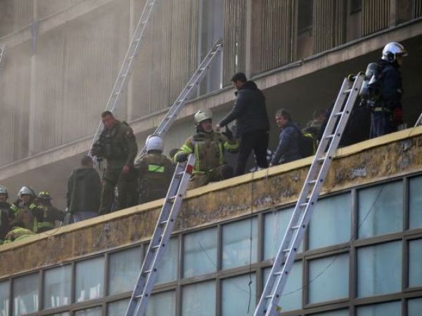 Voluntarios siguen trabajando en el lugar del incendio en el centro de Santiago debido a lo complejo de la emergencia y de la posible emanación de sustancias tóxicas de los productos quemados al interior de las bodegas ilegales.