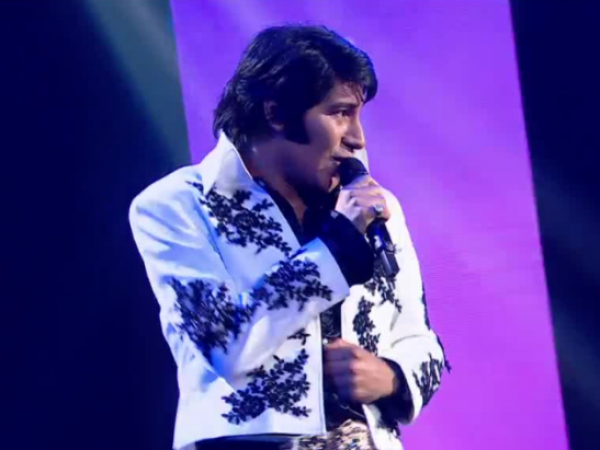 Miércoles 26 de noviembre de 2025 Elvis Presley se la juega con un clásico para seguir en Mi Nombre Es Acompañado de una gran puesta en escena, Sebastián Aravena interpretó "Can't help falling in love".