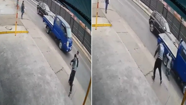 Jueves 22 de mayo de 2025 "¡Es un peligro real!" La reacción de Monse y Eduardo ante impactante y cobarde agresión de hombre en Iquique Un hombre empujó a un transeúnte, que estaba parado en la calle, frente a un camión en movimiento en Iquique.