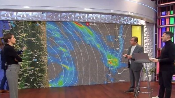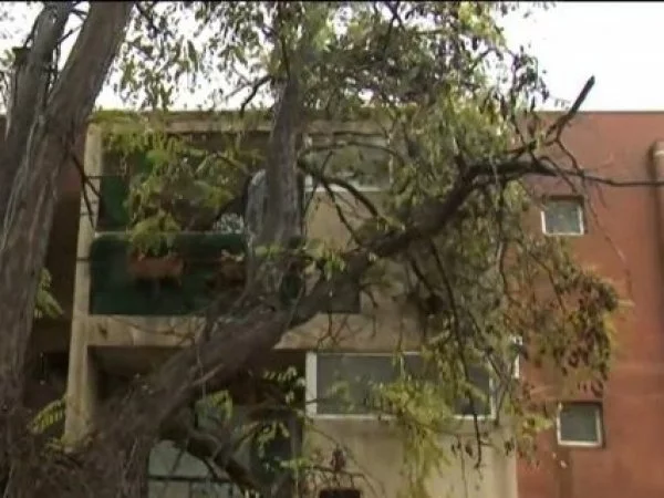 Una vecina literalmente tiene una rama completa al interior de su terraza y eso es porque un árbol, debido al sistema frontal, cedió sobre el edificio y genera un gran peligro para todos los residentes.